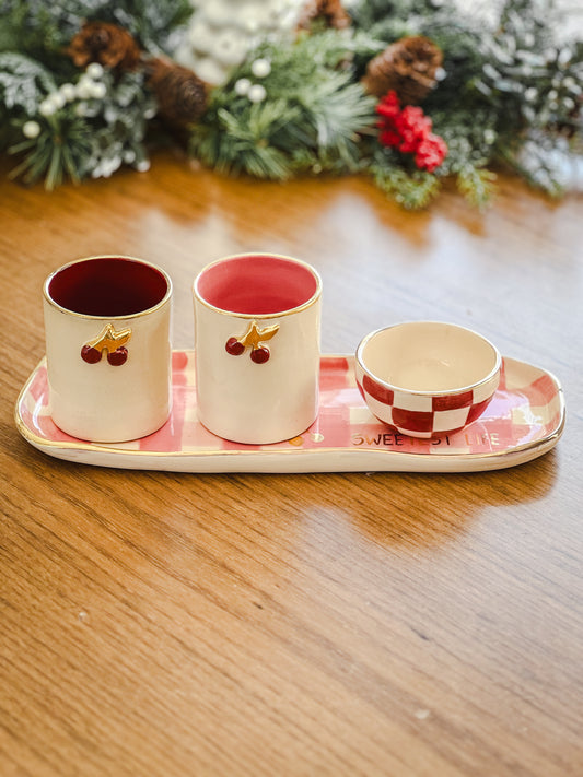 BANDEJA COM COPINHOS E MINI BOWL CEREJA