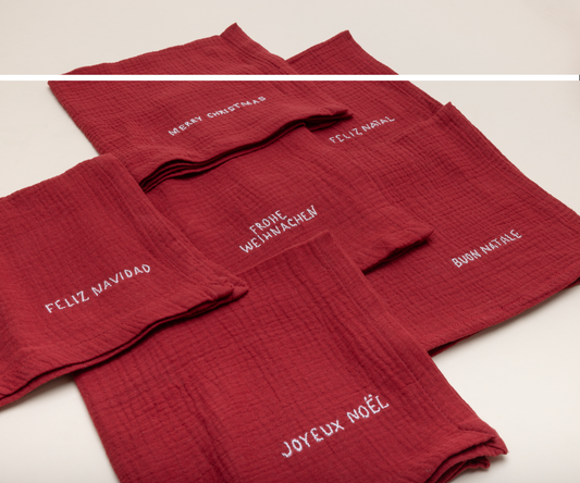 Guardanapo Bonjour em linho bordado à mão - 4 unidades