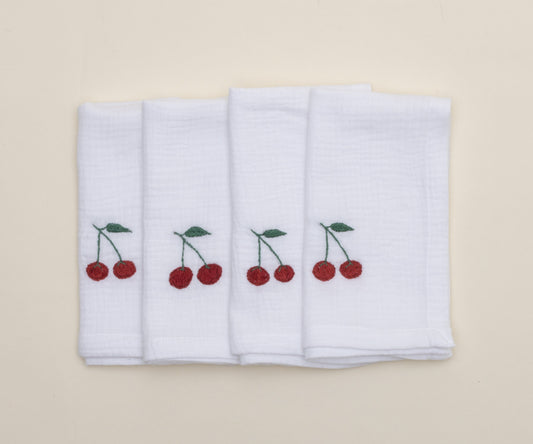 GUARDANAPO BRANCO COM CEREJA – CONJUNTO COM 4