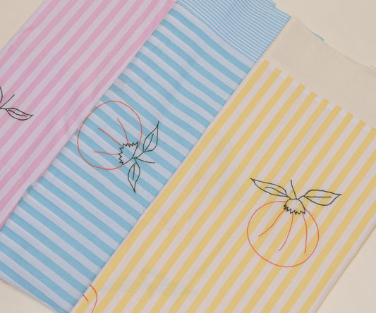 TOALHA QUADRADA LISTRADA AMARELA COM TANGERINAS MANDARINE