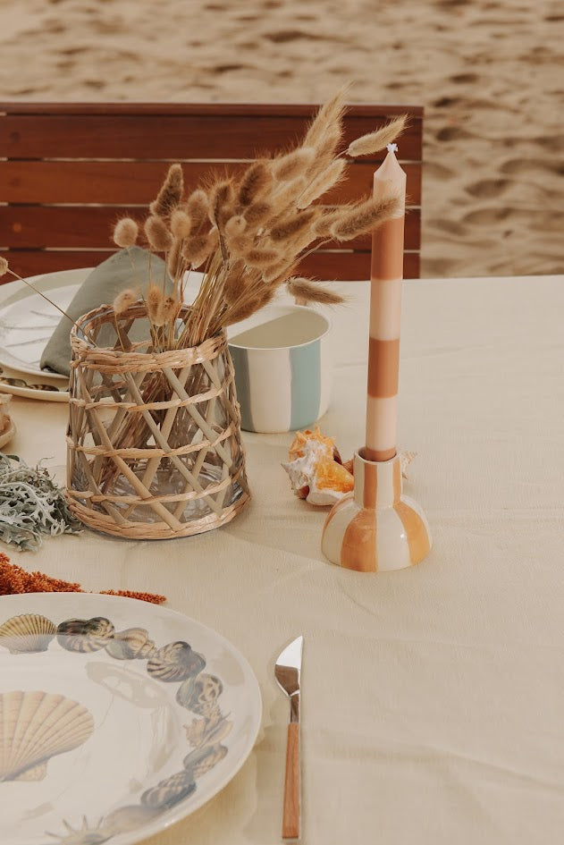CASTIÇAL LISTRADO EM CERÂMICA – UNITÁRIO