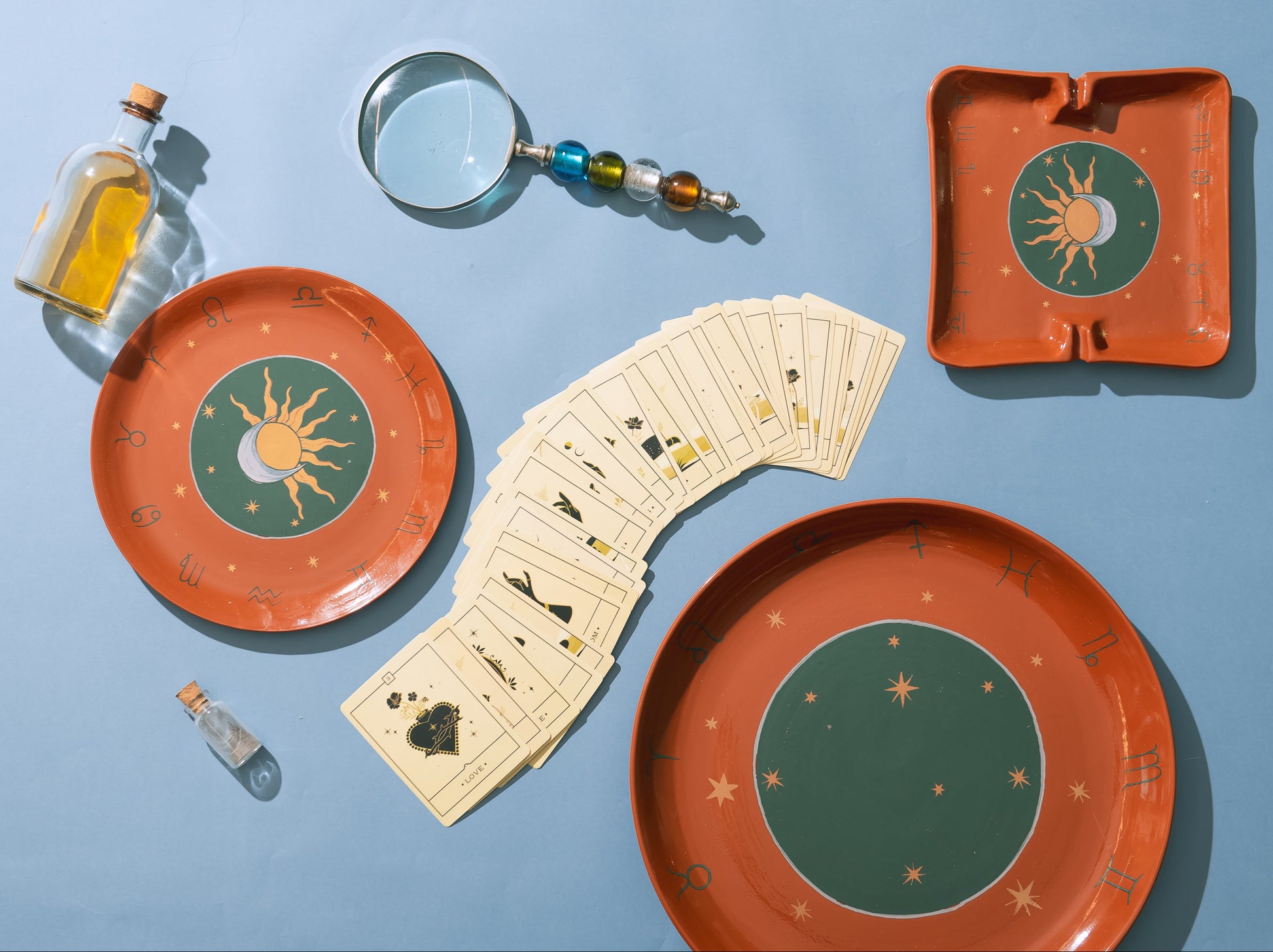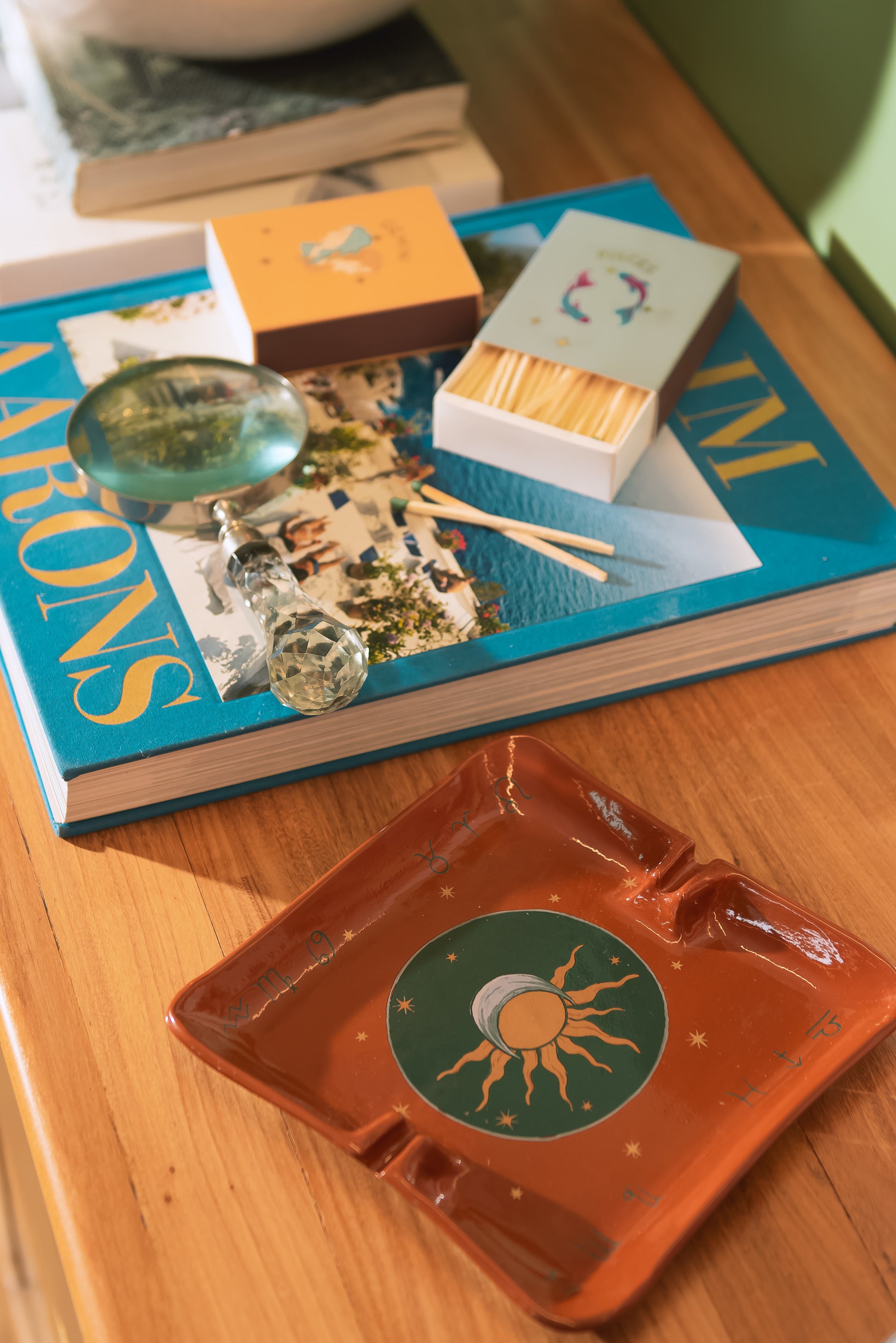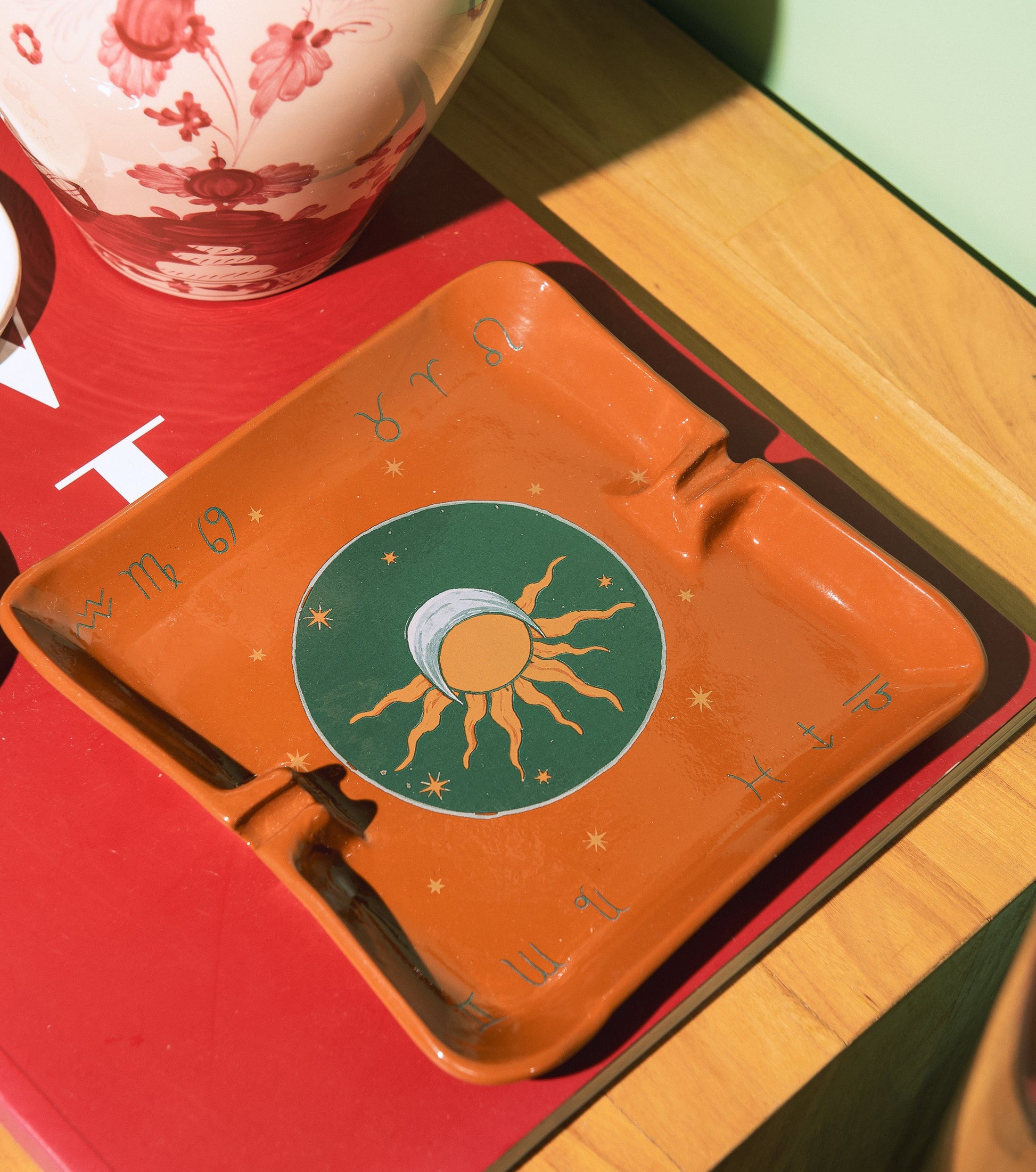 Moldado e pintado à mão em cerâmica, essa peça vem também com uma estampa exclusiva de lua e sol que combina com toda a coleção Astral.