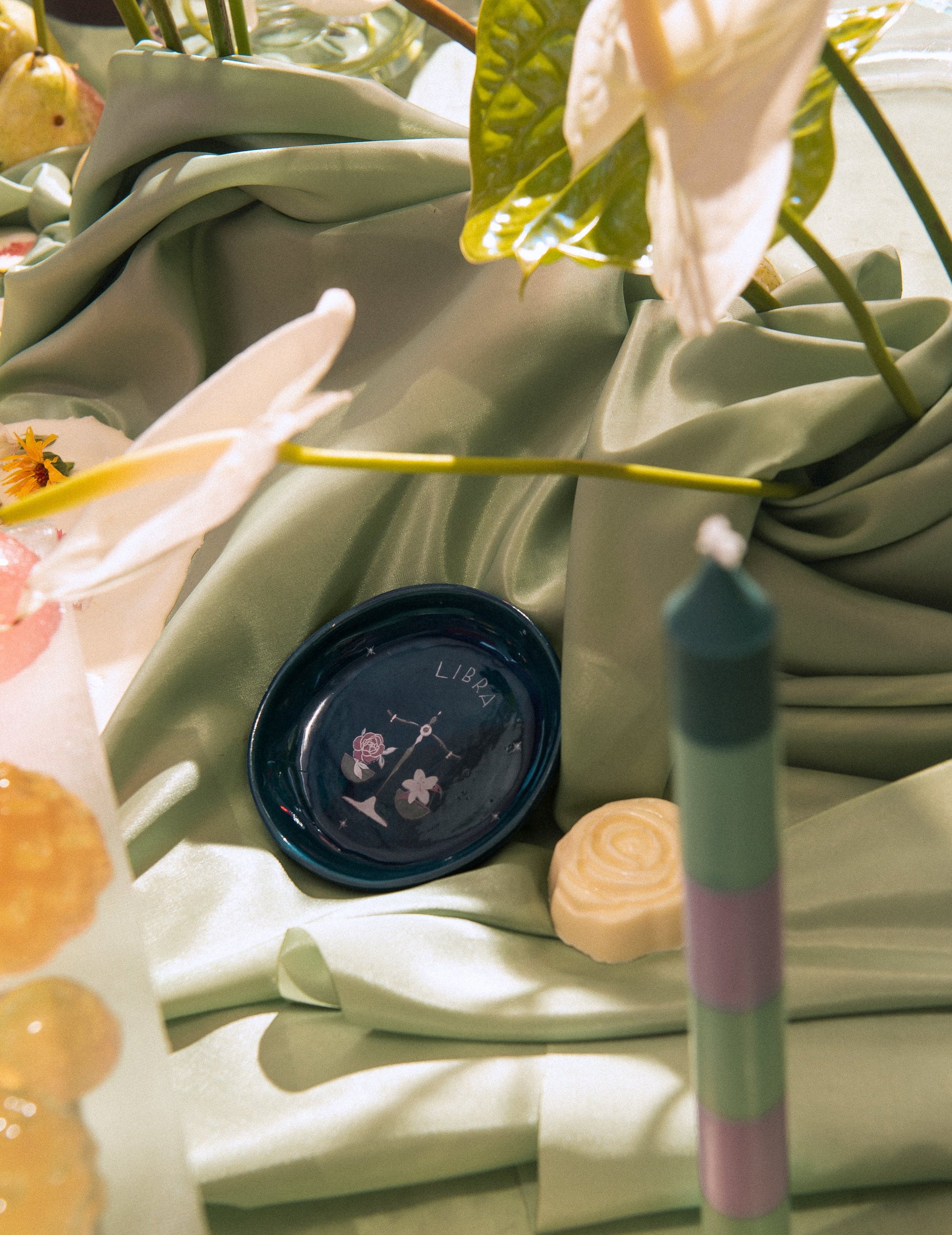 Pratinho em cerâmica moldado e pintado á mão para decorar um cantinho especial , uma mesa de centro junto com outros objetos ou para colocar ao lado da mesa de cabeceira . Com estampa referente a cada signo exclusiva , essa é uma peça ideal para presentear e ser presenteada.
