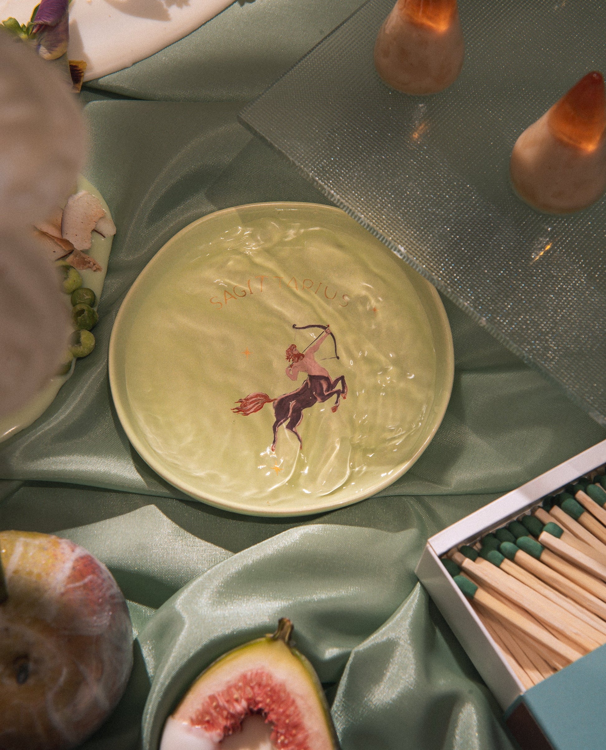 Pratinho em cerâmica moldado e pintado á mão para decorar um cantinho especial , uma mesa de centro junto com outros objetos ou para colocar ao lado da mesa de cabeceira . Com estampa referente a cada signo exclusiva , essa é uma peça ideal para presentear e ser presenteada.