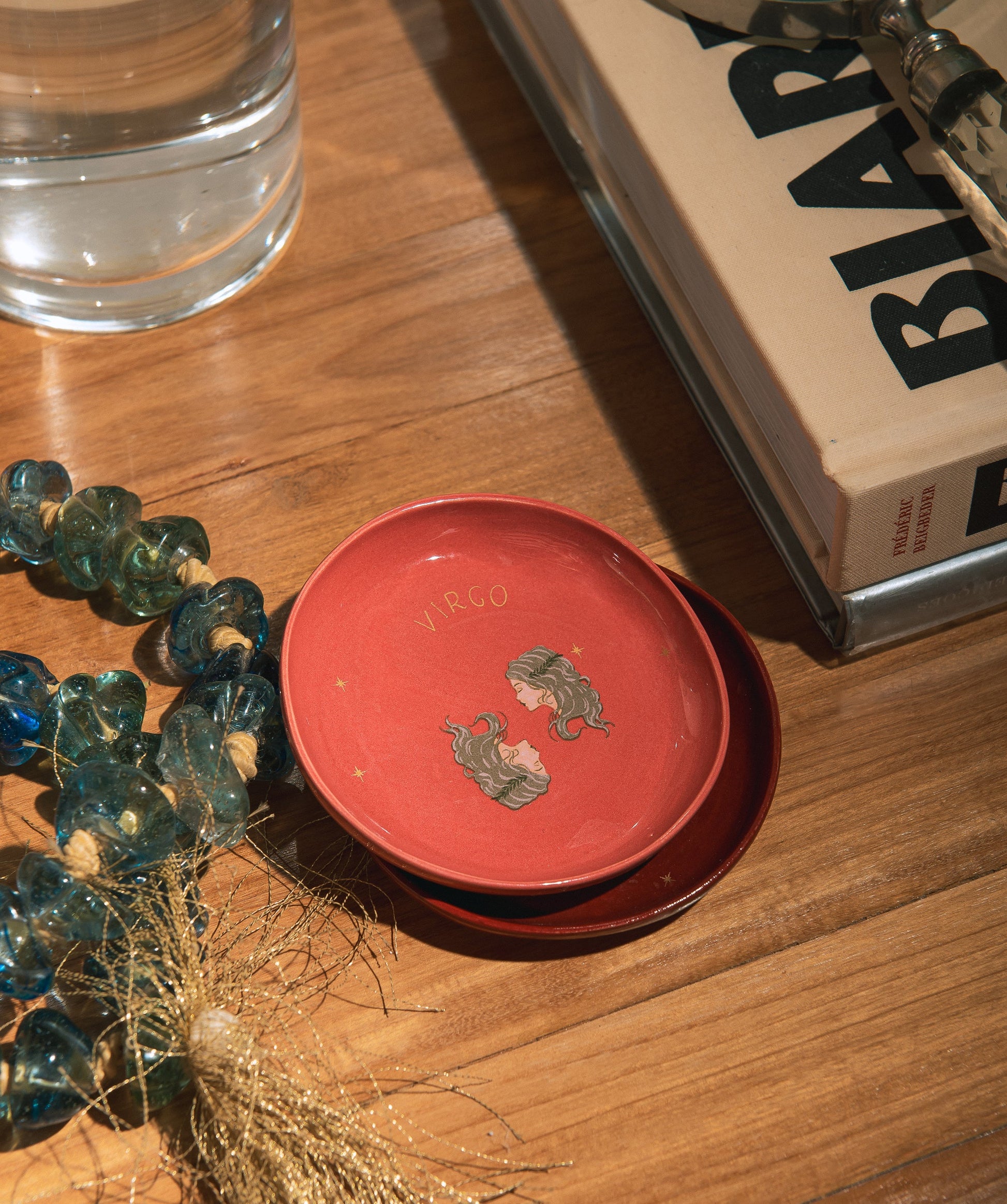 Pratinho em cerâmica moldado e pintado á mão para decorar um cantinho especial , uma mesa de centro junto com outros objetos ou para colocar ao lado da mesa de cabeceira . Com estampa referente a cada signo exclusiva , essa é uma peça ideal para presentear e ser presenteada.