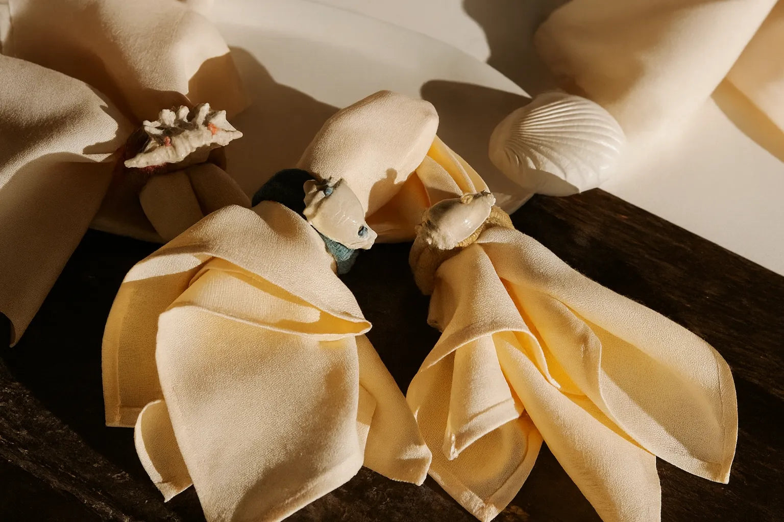 Funcionalidade: Peça funcional que acomoda o guardanapo de forma organizada e embeleza a mesa posta, sendo um detalhe interessante na composição.