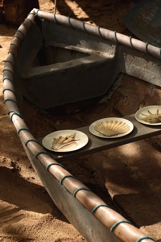 Descrição: Prato de sobremesa em cerâmica com acabamento artesanal e estampa exclusiva da coleção Marea – Triya. Possui leve brilho natural do esmalte, conferindo sofisticação e delicadeza à peça.