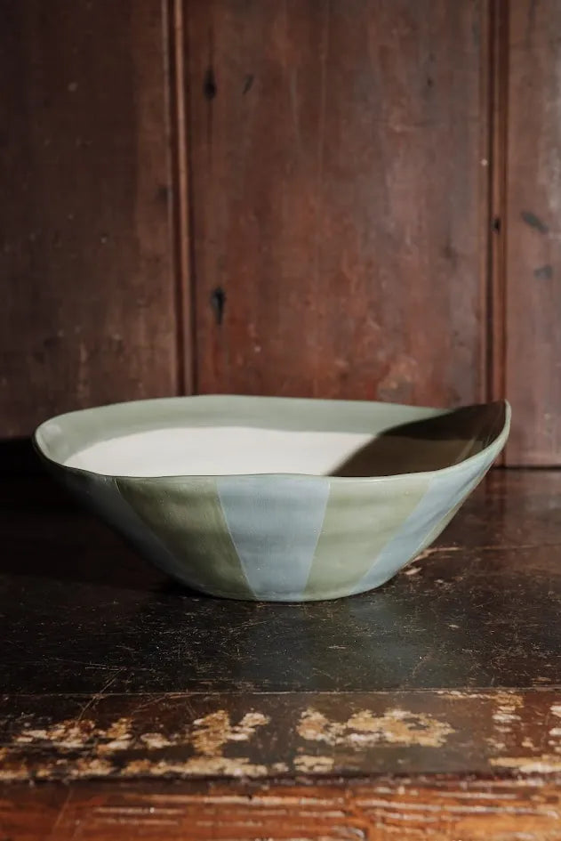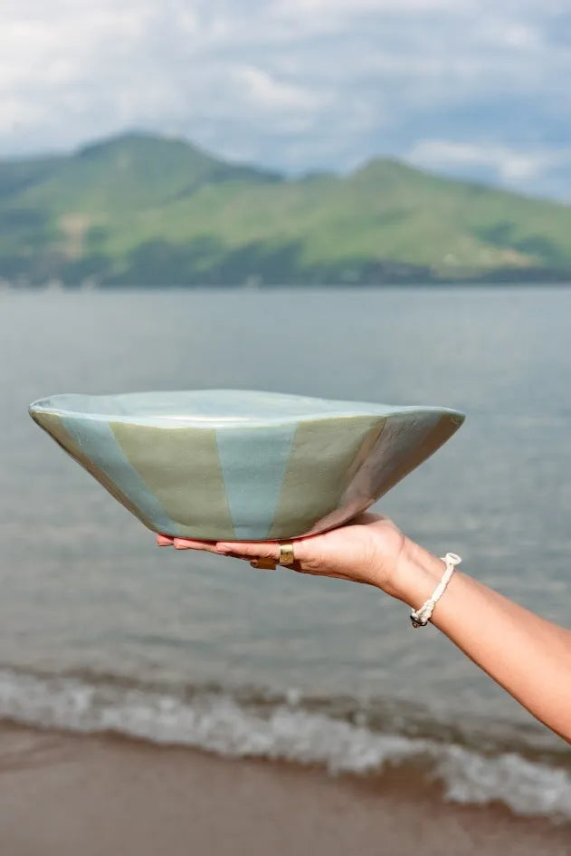 Funcionalidade: Combinando com as outras peças da mesa nos mesmos tons da coleção, essa é uma peça de cerâmica orgânica ideal para servir porções grandes de massas, saladas, sopas e caldos que precisam de profundidade e tamanho para serem servidos. Ideal para compor o serviço de uma refeição completa.
