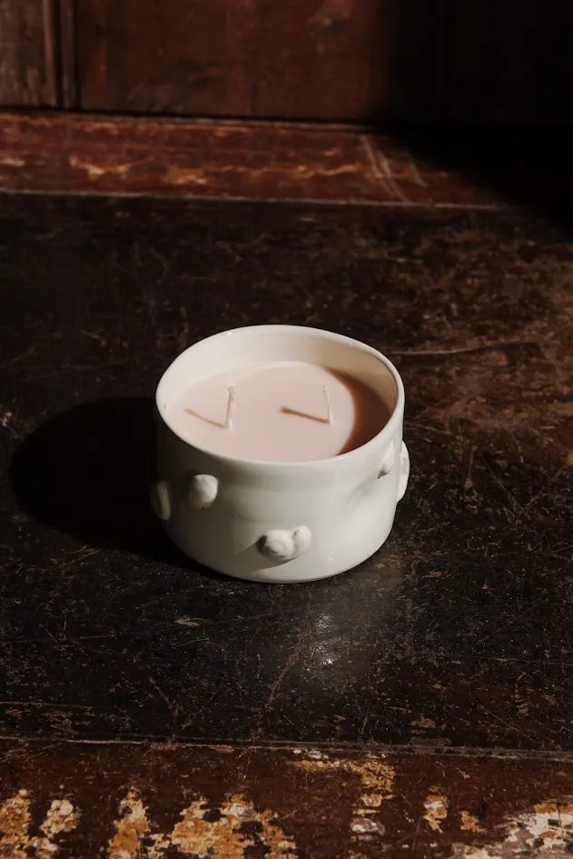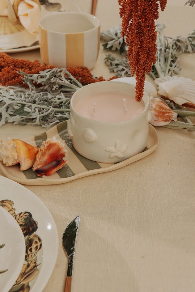 Funcionalidade: Um detalhe que muda tudo. A vela cria uma atmosfera acolhedora. O copo de cerâmica, feito à mão, mantém o calor por mais tempo, ajuda na queima homogênea e depois vira uma peça para decorar e guardar pequenas coisas.