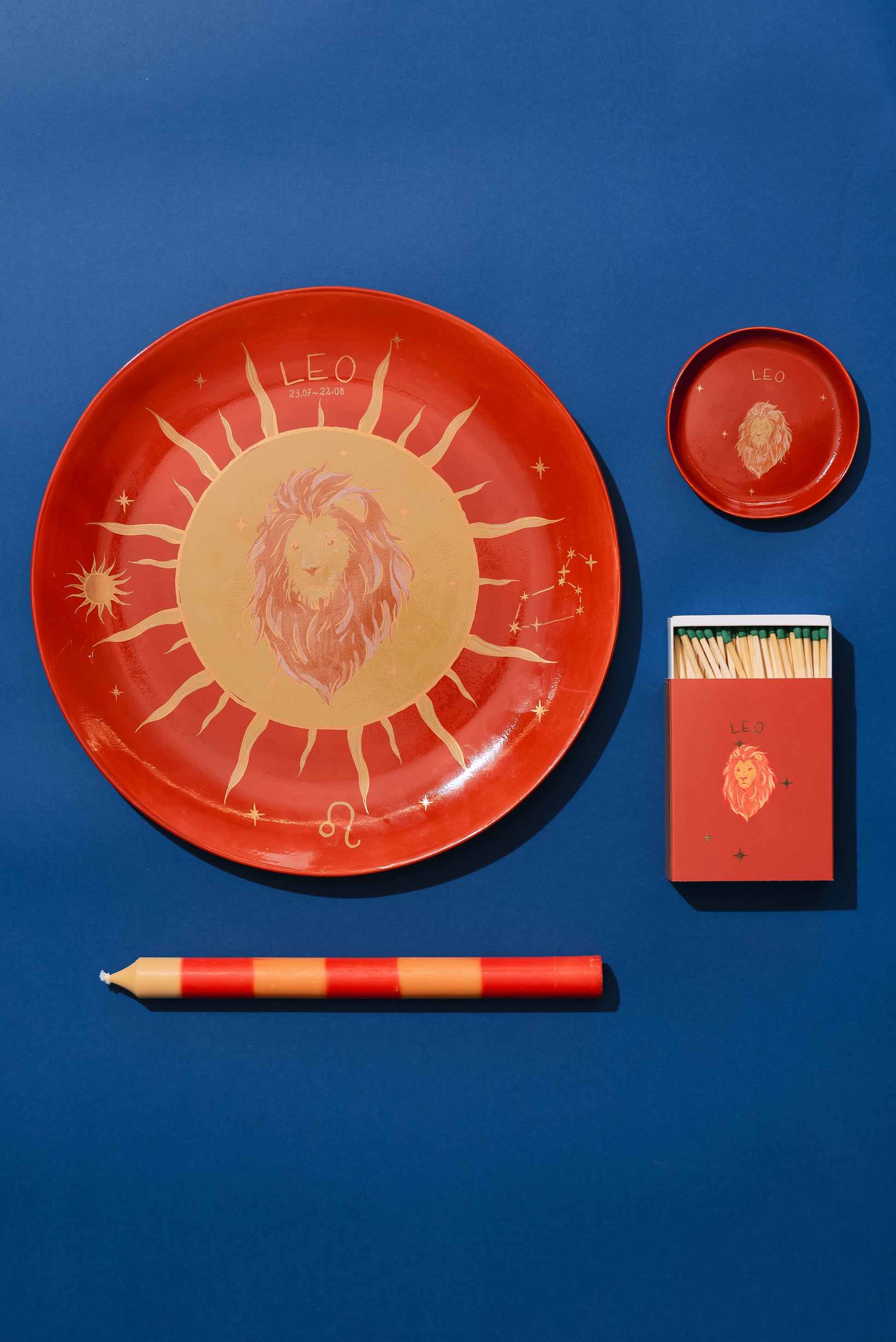 Copo em cerâmica é pintado à mão com uma estampa exclusiva inspirada no signo de Leão .