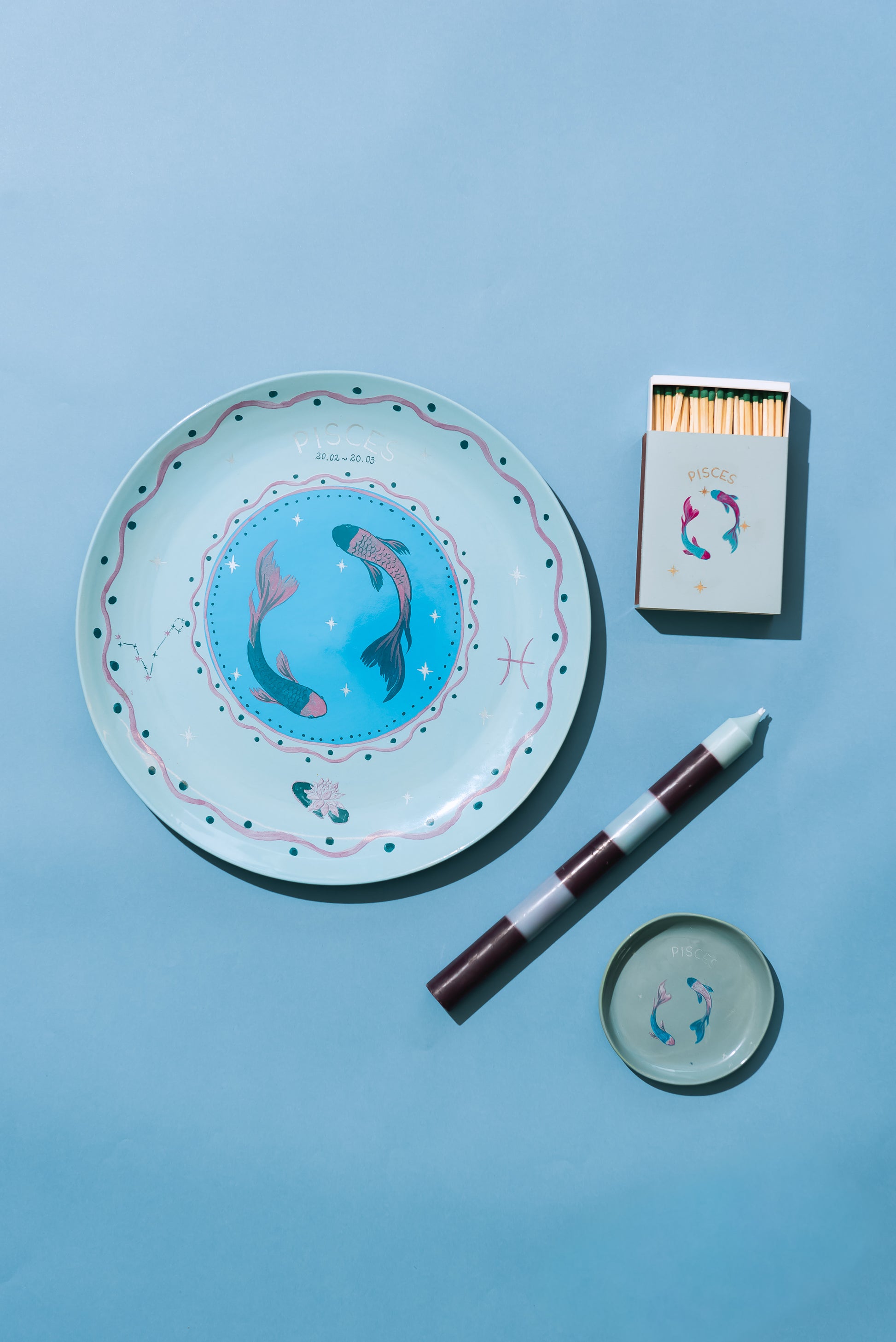 Copo em cerâmica é pintado à mão com uma estampa exclusiva inspirada no signo de Peixes.